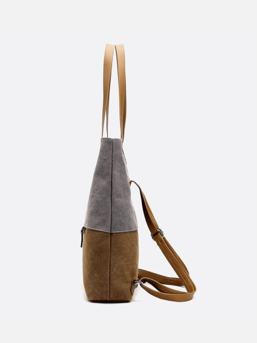 The Two-Tone Canvas Tote from Aurora Bags is designed for women who embrace simplicity with subtle character. Featuring a clean and modern aesthetic, this tote bag pairs soft gray and earthy brown panels for a refined yet down-to-earth vibe. Constructed from durable canvas with sleek faux leather shoulder straps, it's lightweight yet strong—ideal for everyday errands, casual workdays, or market strolls.